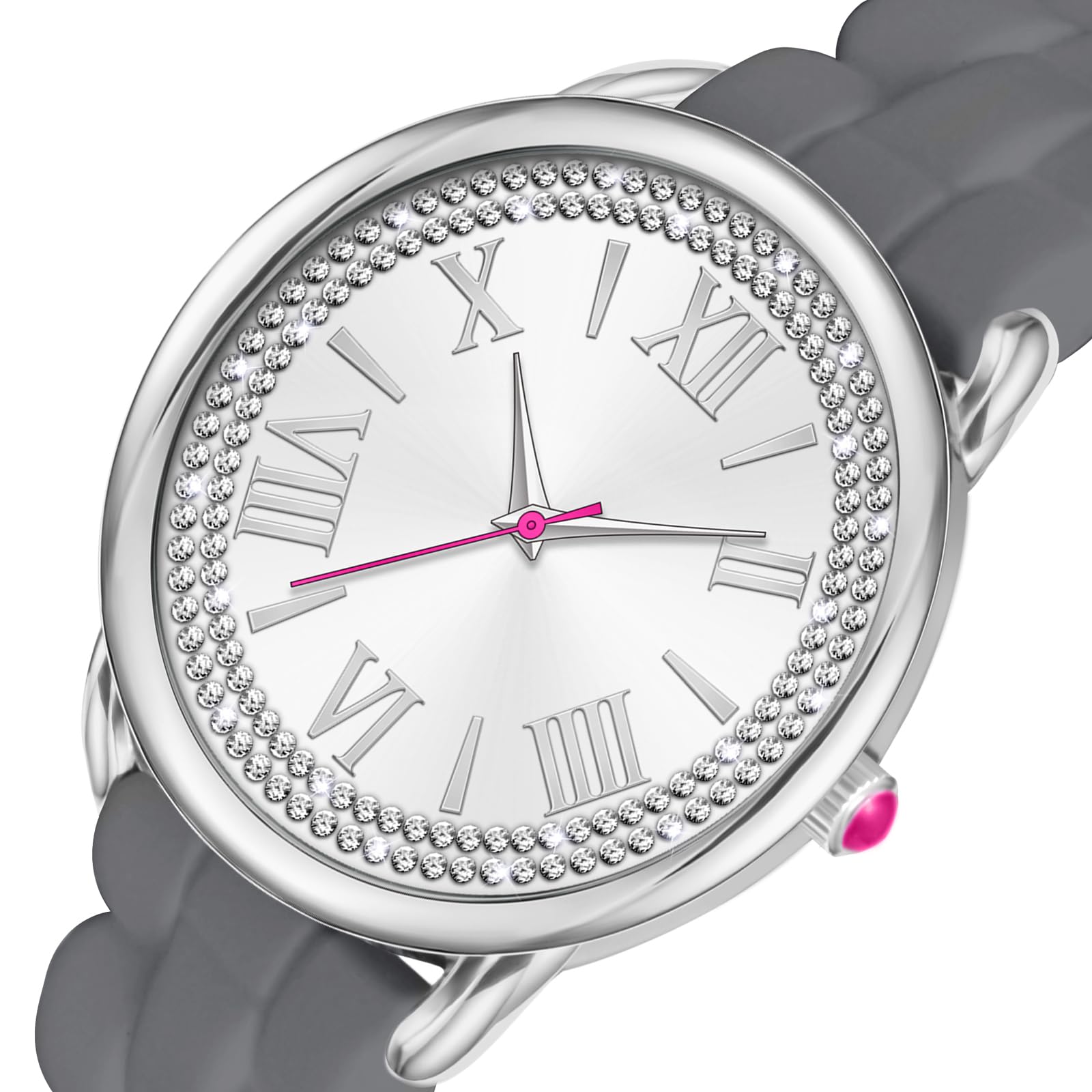 Women's Watch Ladies Quartz Watch with Crystal Accents Purple Leather Band Silver Dial