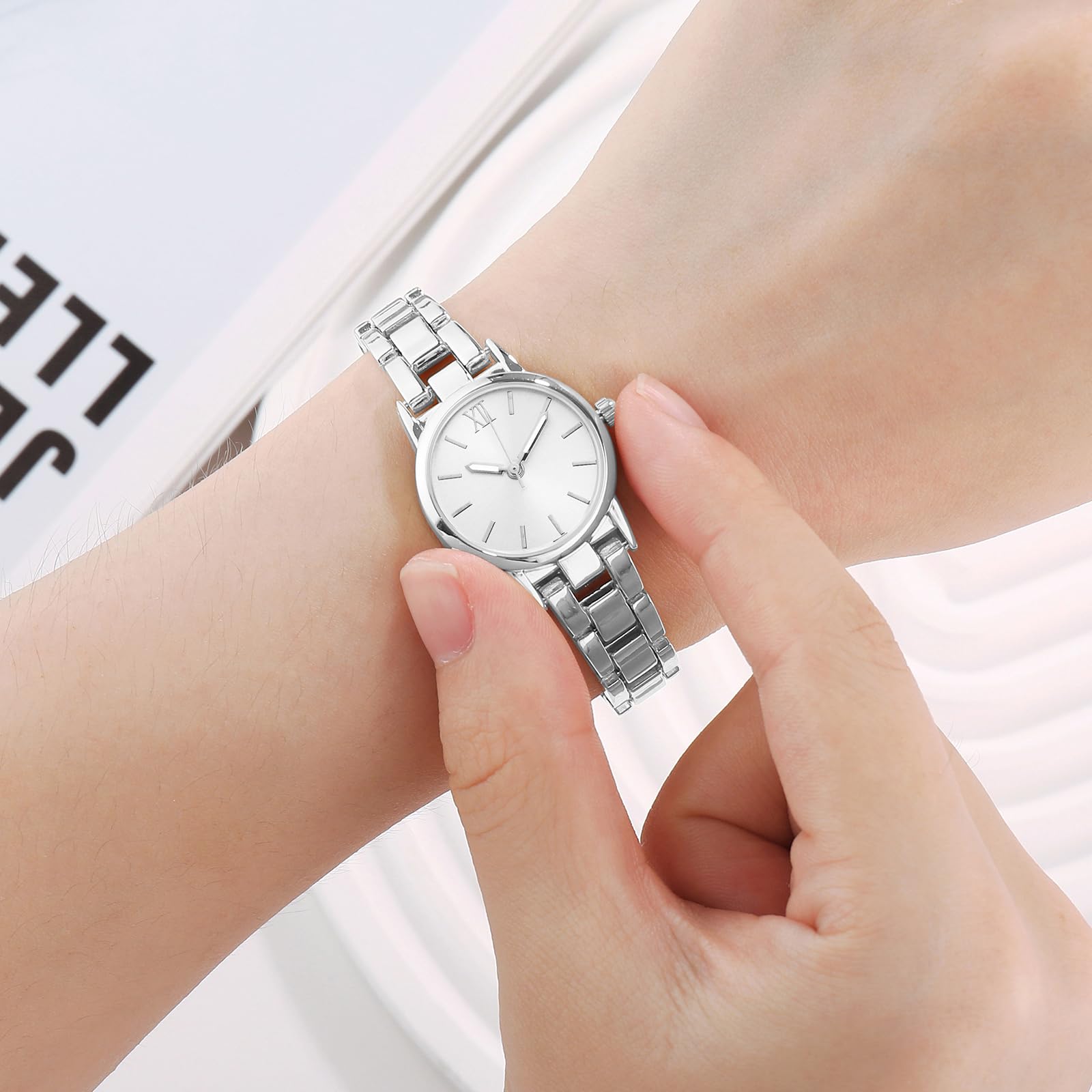 - STYLISH WOMEN'S WATCH: The women's quartz watch features an exquisite alloy bracelet, unique round dial design, and romantic and fashionable style, making this small watch suitable any occasion